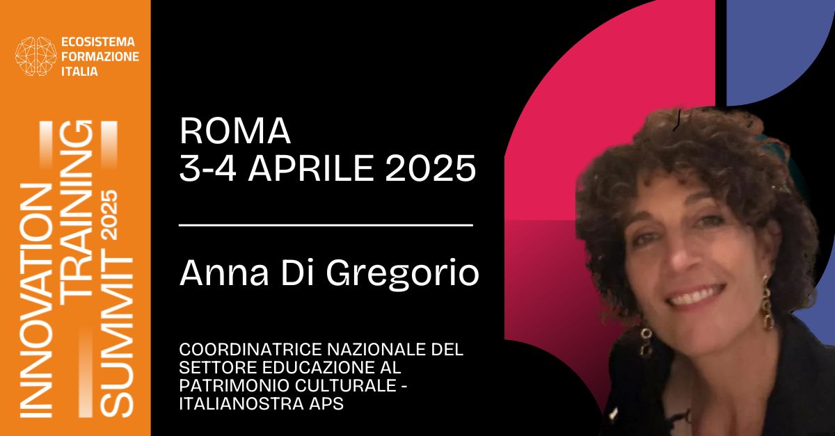 Nella mattinata di oggi 3 aprile la prof.ssa Anna Di Gregorio, Coordinatrice nazionale del Settore Educazione al Patrimonio Culturale di Italia Nostra, parteciperà come speaker all’Innovation Training Summit 2025, (sala speaker 1, dalle ore 13.30) al panel su “La storymap per una nuova didattica interdisciplinare: l’esperienza di Italia Nostra”